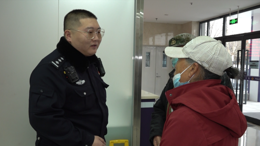 白云鹏(左)向被骗老人了解案件线索